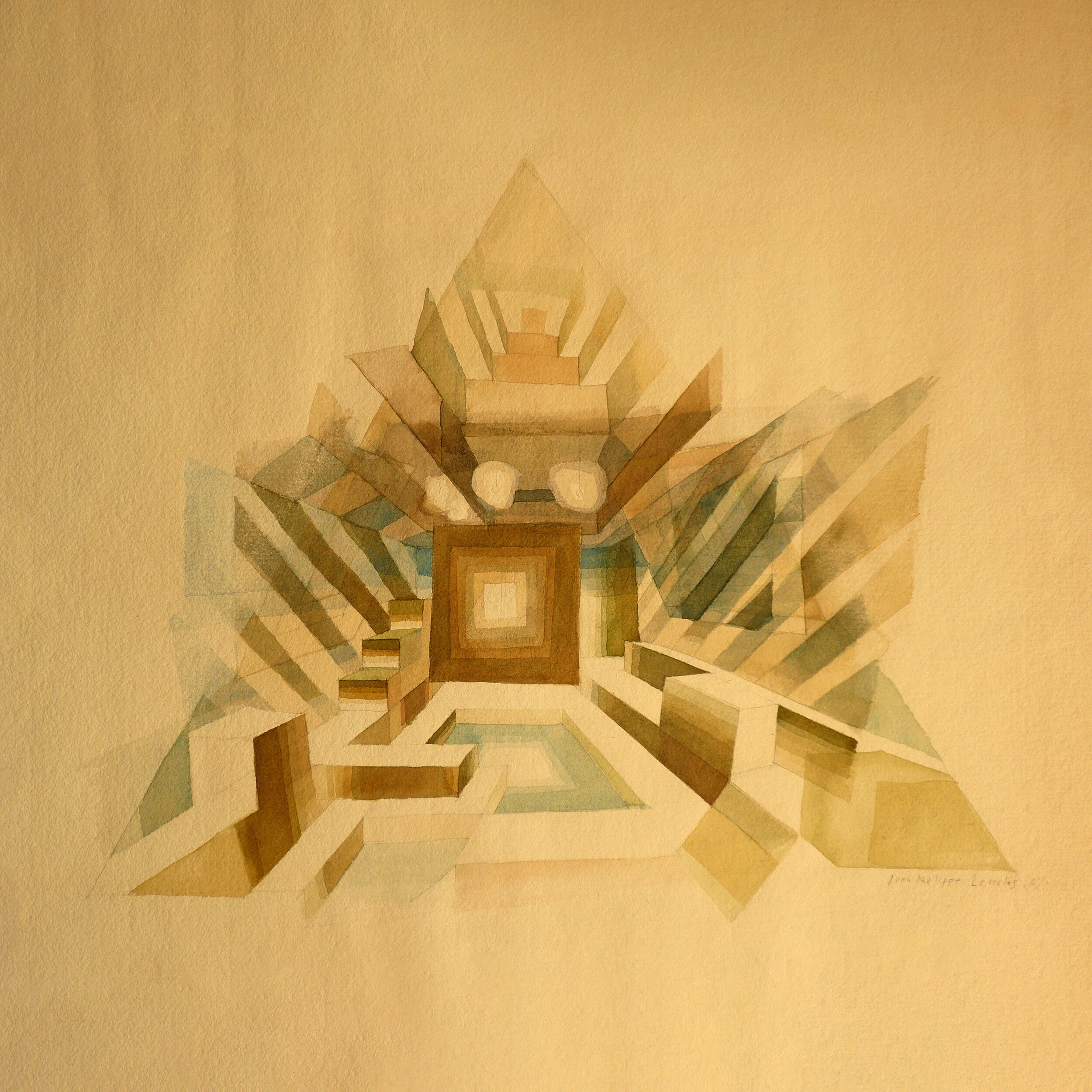 ↑ Watercolour. 50 x 60cm. (Musée National d'Art Moderne, Centre Pompidou, Paris.) Preparatory studies for the interior view of an auditorium in the cultural centre of a university. 1966