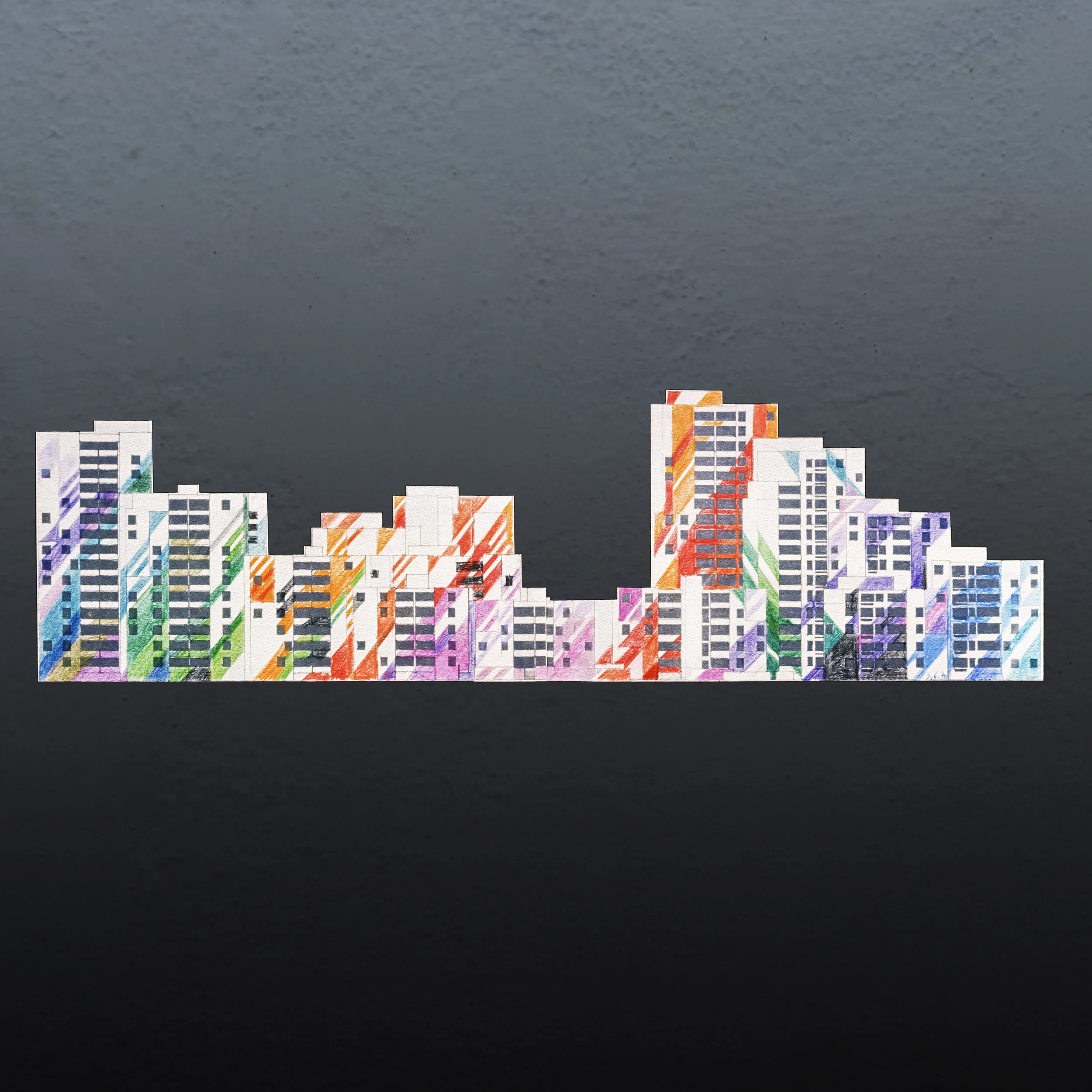 ↑ Watercolour. 23 x 31cm. (Musée National d'Art Moderne, Centre Pompidou, Paris.) Preparatory study for the colour design of housing in Créteil. 1970